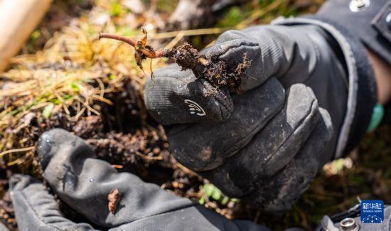 這是在那曲市索縣西昌鄉(xiāng)拍攝的剛採(cǎi)挖出的蟲(chóng)草(5月18日攝)。新華社記者 丁增尼達(dá) 攝