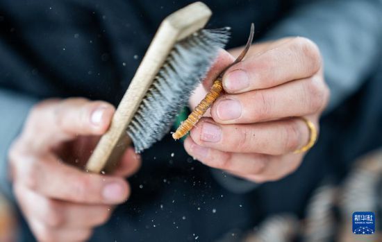 在那曲市索縣西昌鄉(xiāng),牧民白嘎在收納清理好的蟲(chóng)草(5月18日攝)。新華社記者 丁增尼達(dá) 攝