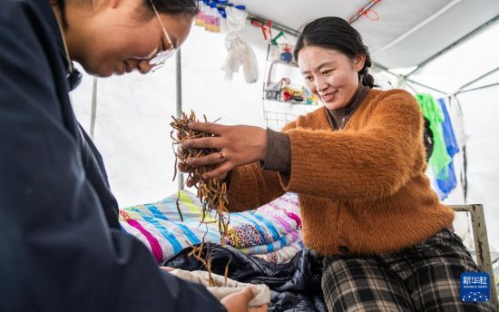 在那曲市索縣西昌鄉(xiāng),牧民將清理好的蟲(chóng)草裝袋收納(5月18日攝)。新華社記者 丁增尼達(dá) 攝